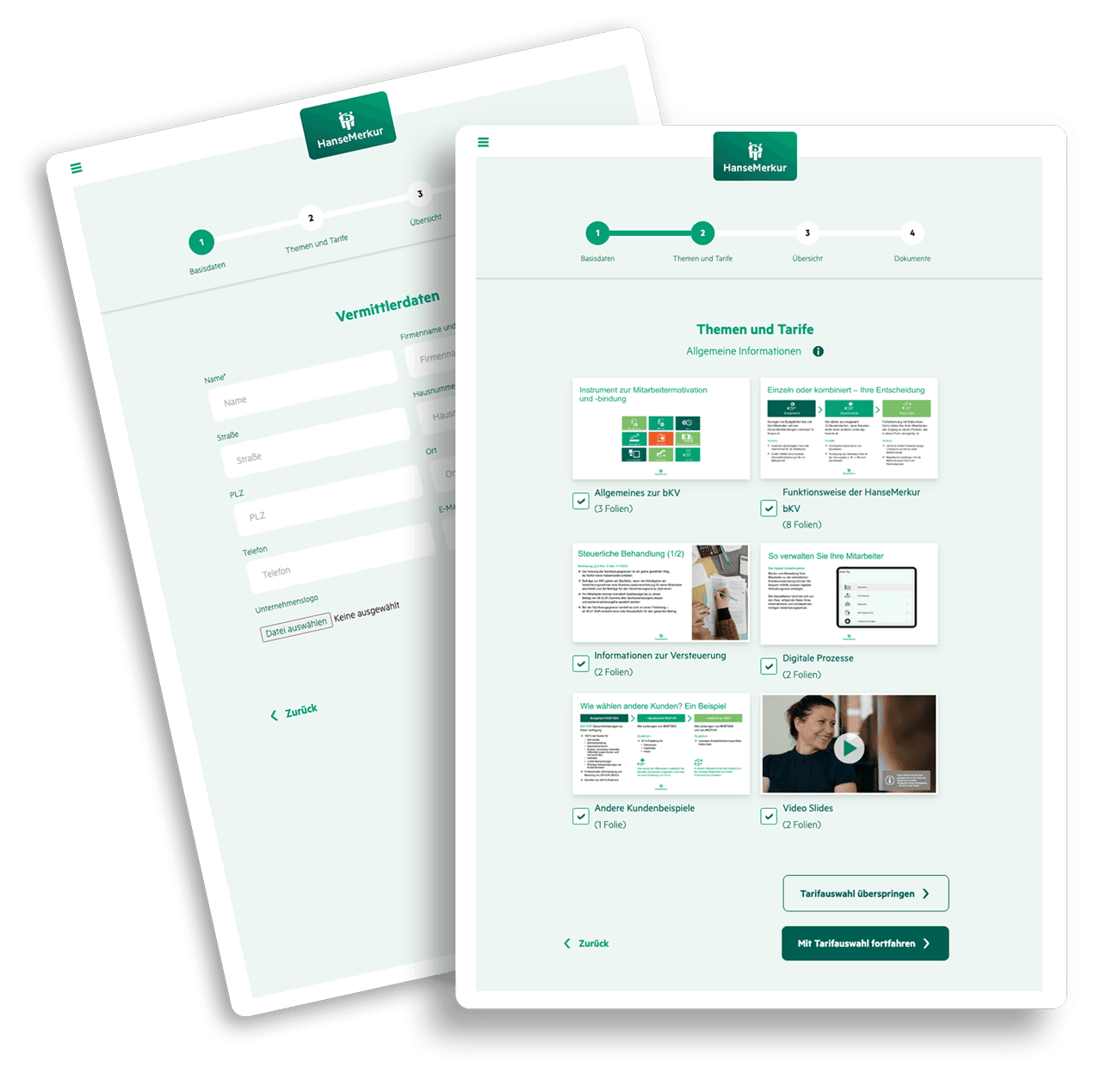 Dank der intuitiven Bedienung lassen sich Unternehmens- und Ansprechpartnerdaten, Logos sowie individuelle Inhalte schnell ergänzen. Per Knopfdruck wird daraus eine vollständige Präsentation generiert, die automatisch dem Corporate Design der HanseMerkur entspricht. So ist jederzeit ein einheitliches, professionelles Markenbild sichergestellt – unabhängig davon, wer die Präsentation erstellt oder in welchem Vertriebskanal sie eingesetzt wird.