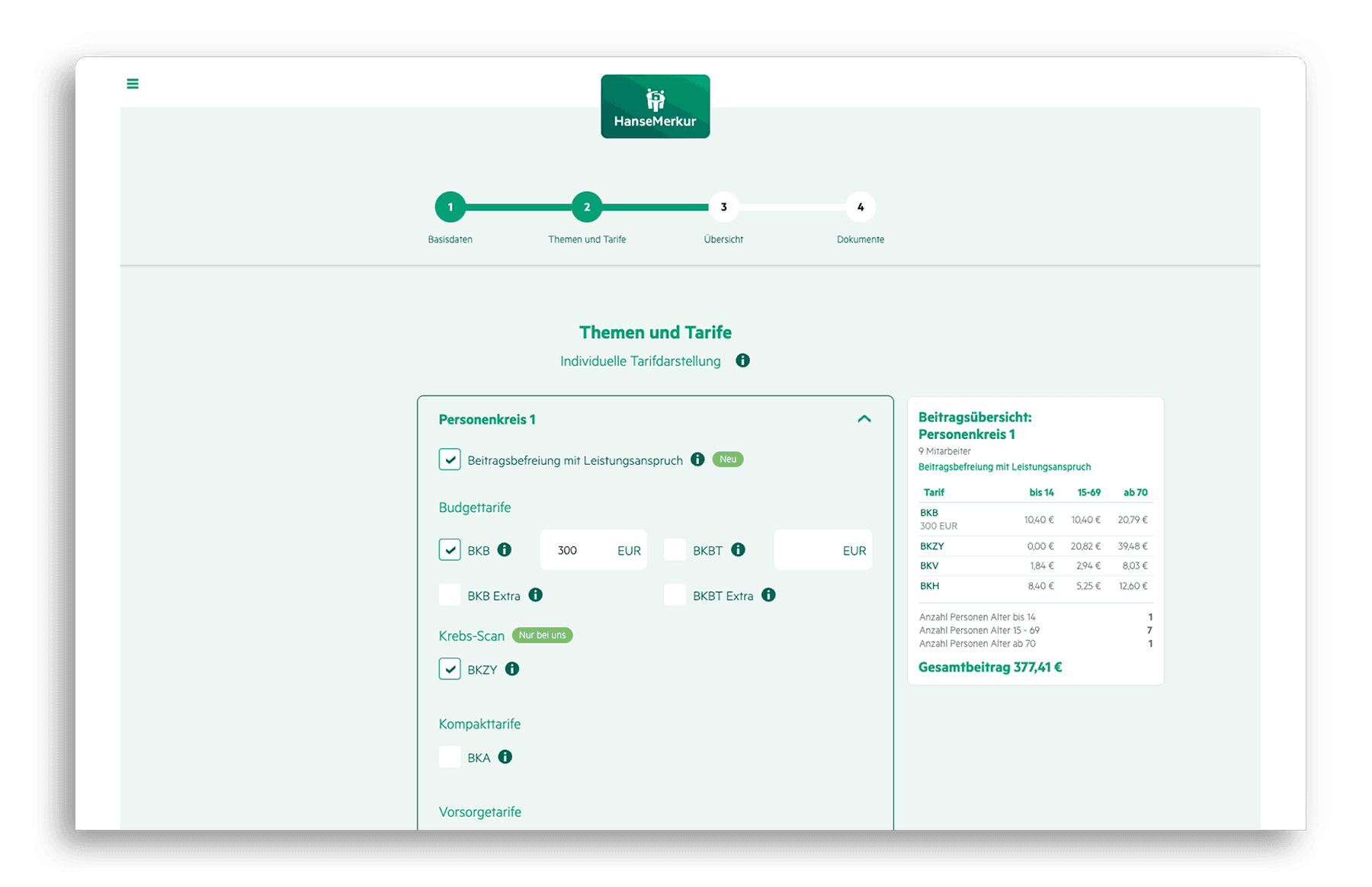 Die HanseMerkur stand im Vertrieb der bKV vor einer zentralen Herausforderung: Vertriebspartnerinnen und Vertriebspartner benötigen maßgeschneiderte Präsentationen mit Tarifvarianten, die auf die jeweiligen individuellen Bedürfnisse der potenziellen Kunden zugeschnitten sind.